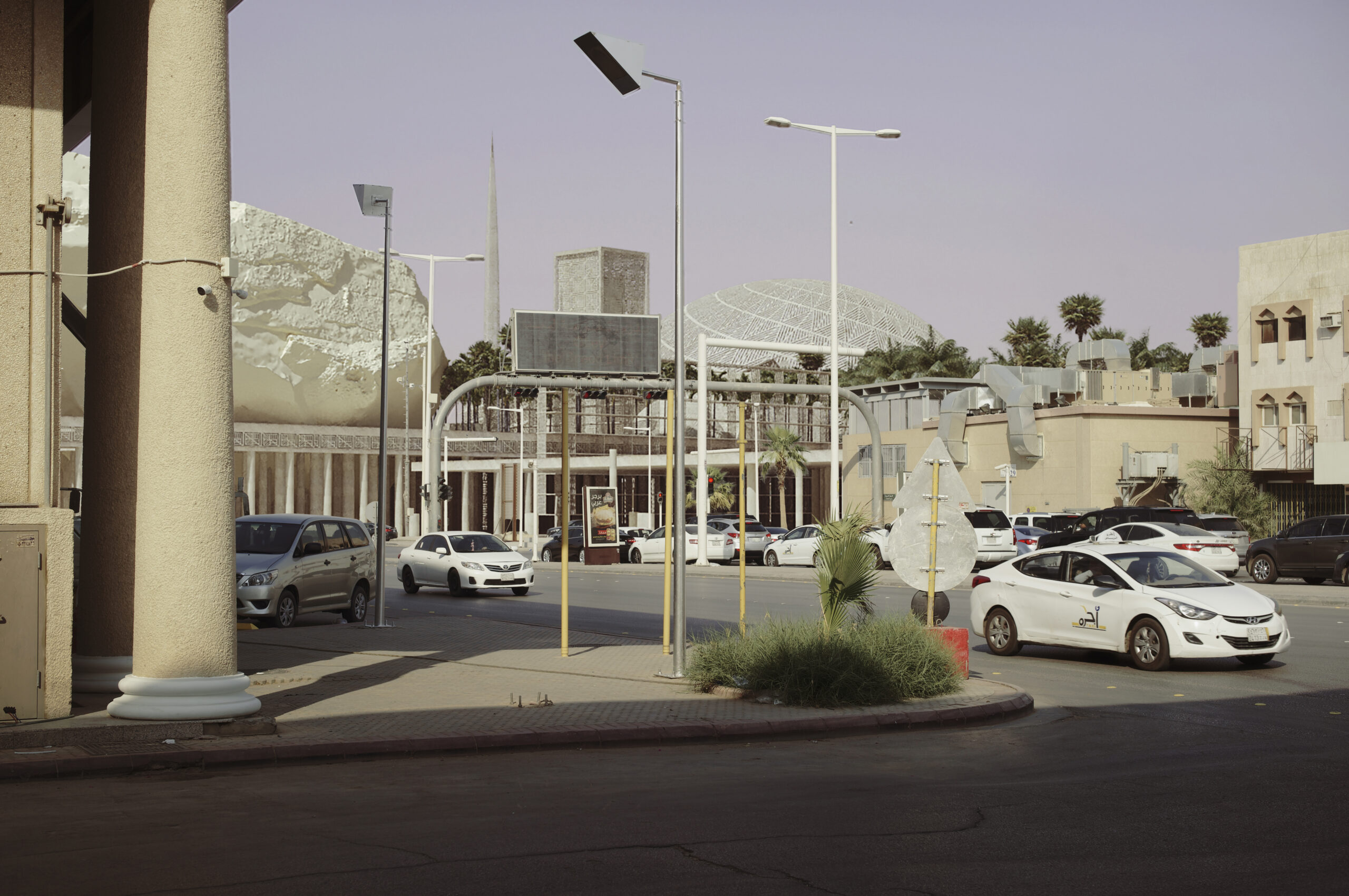 En collaboration avec le photographe Julien Lanoo, ce projet s'est construit autour de l'idée de l'introduire dans la réalité de la ville arabe plutôt que dans une reconstruction fantasmée. Nous avons missionné le photographe pour un reportage d'ambiance de la ville et utilisé les photos pour y faire apparaitre le projet, parfois à son emplacement exact mais aussi parfois au bout d'une rue, derrière les arbres d'un parc. Un objet étrange, sculptural qui émerge dans la banalité urbaine.