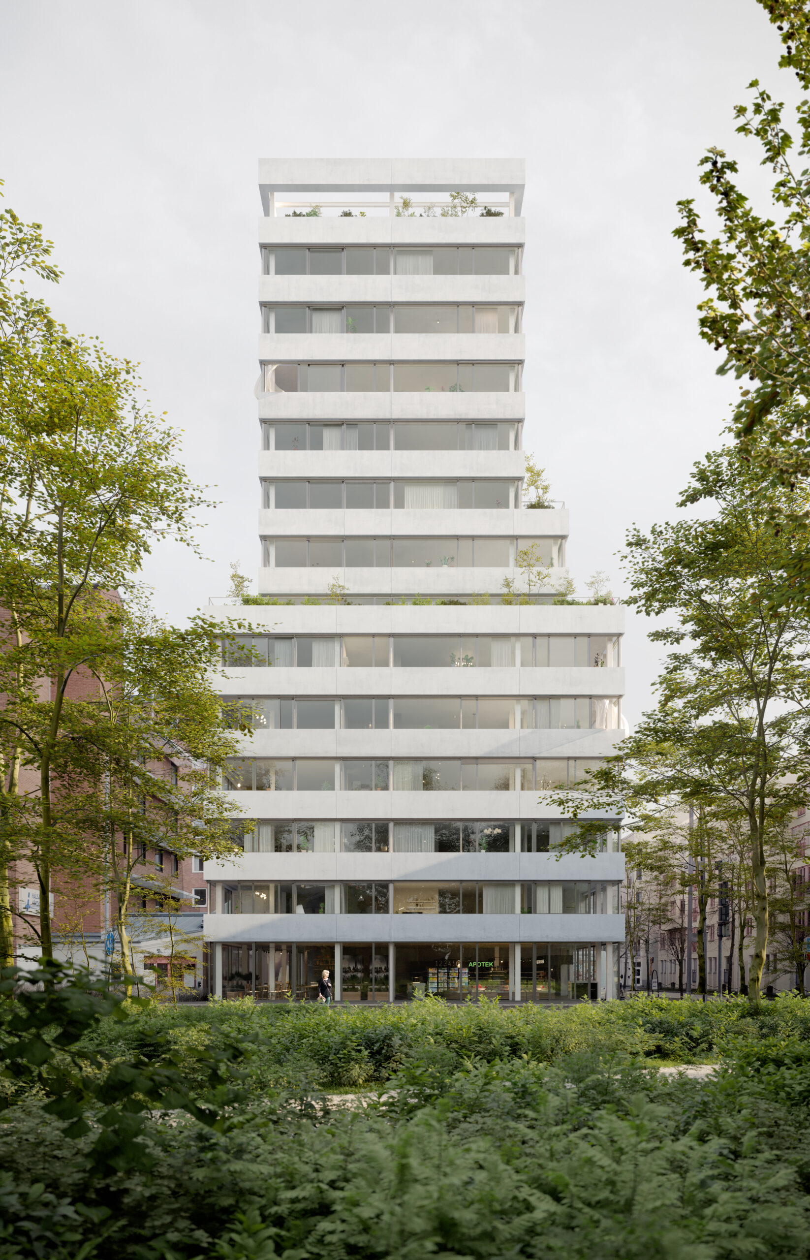 Un discours entre nature et architecture, lorsque cette dernière s'étire vers le ciel pour aller chercher la lumière et l'espace.