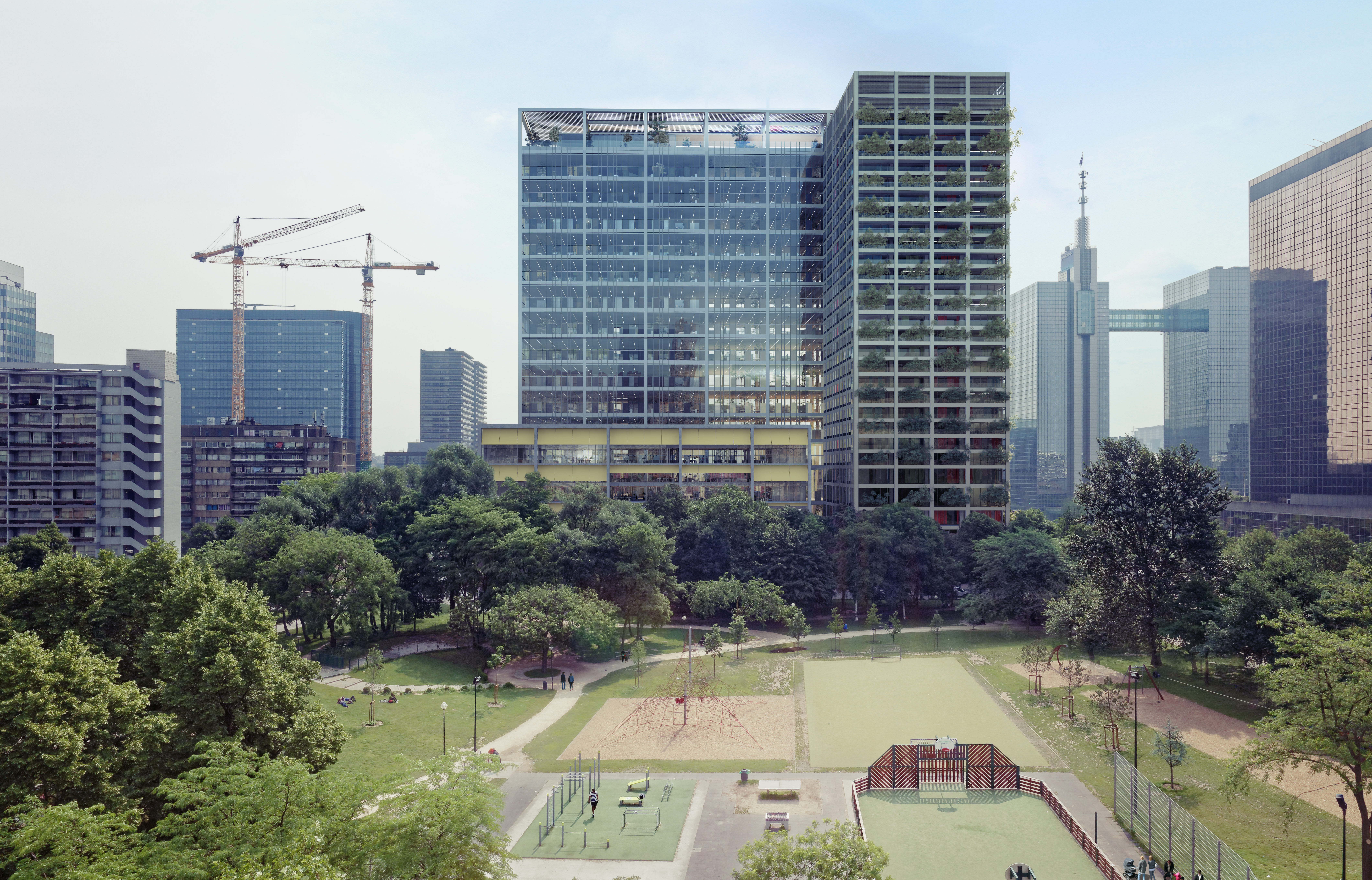 La réhabilitation d'une tour, un défi environnemental ou se mélange densité urbaine et une volonté de réintégrer le végétal jusque dans les bureaux.