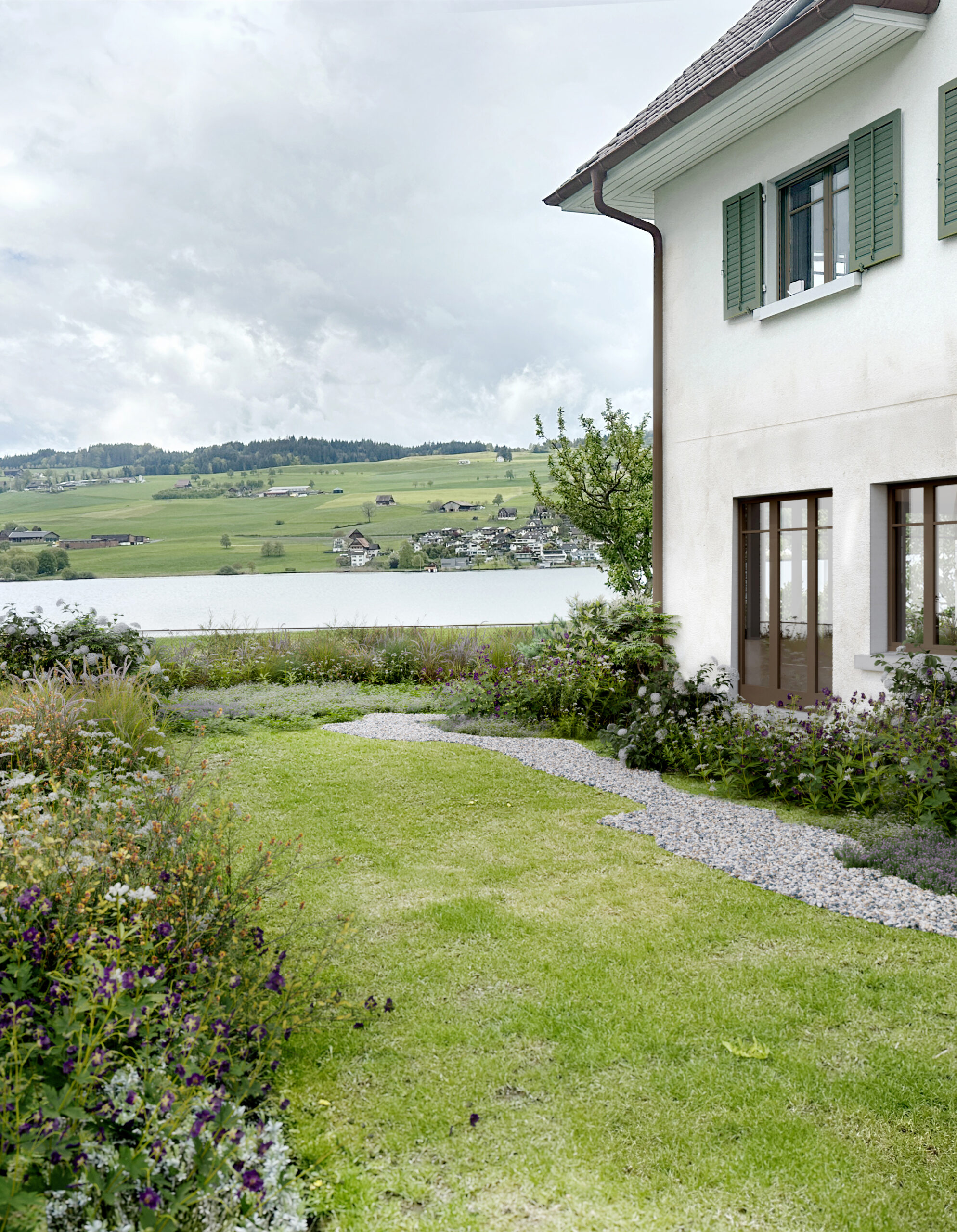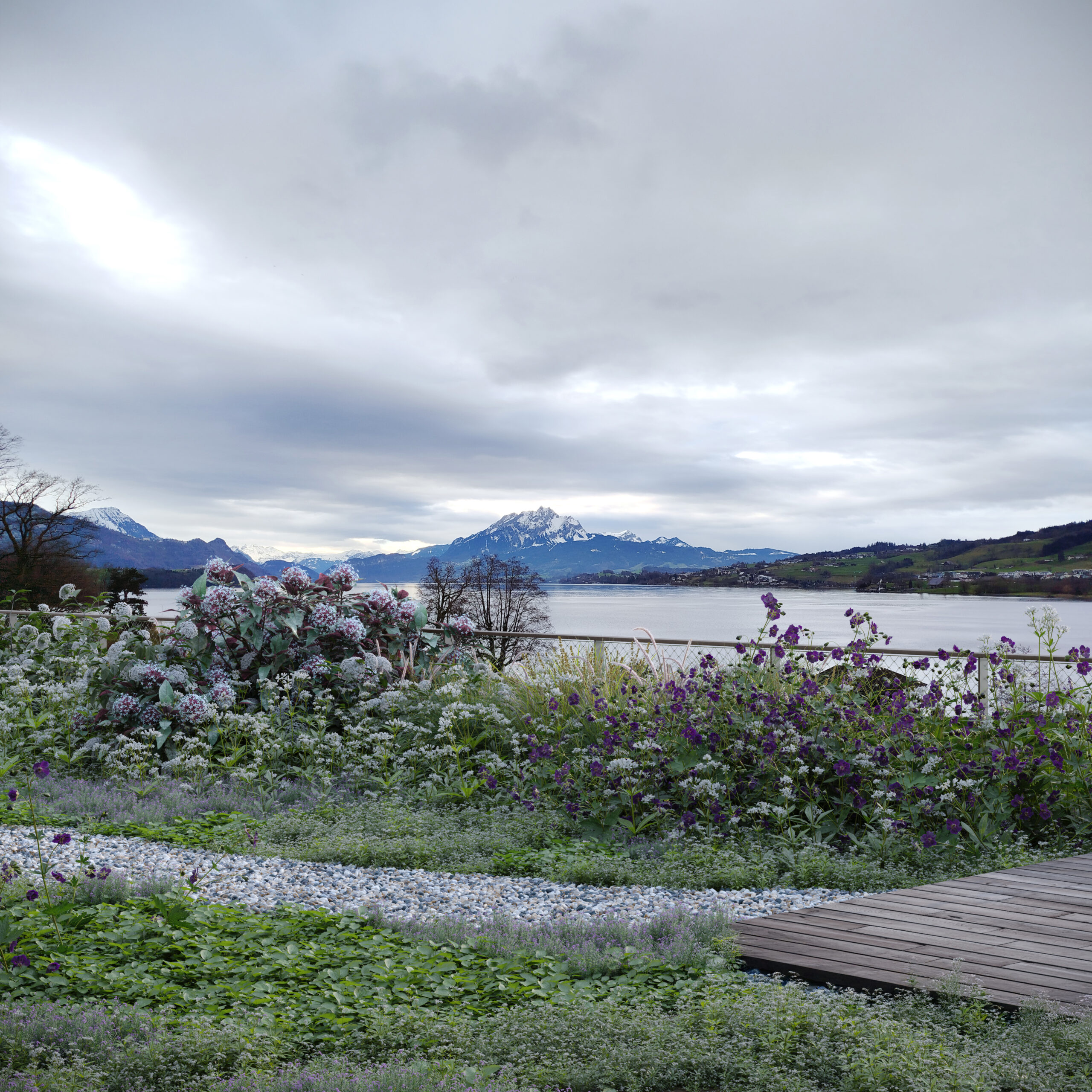 Pour développer un jardin, nous devons être aussi libres qu’un promeneur, libres dans le choix des cadrages. Un paysage ne se donne jamais d’un seul point de vue. Il se découvre par le parcours, par une suite de perceptions: cette démarche organise une expérience du jardin dans le temps et dans l’espace. Vient ensuite la sélection fine des plantes et des essences, pour produire des images de paysage précises et crédibles, liées aux saisons et aux contextes. Ici, depuis le palais comme depuis la rue, le jardin agit comme une frontière. Il se déploie en spirale, un mouvement continu, une petite galaxie végétale aspirée par un miroir d’eau.